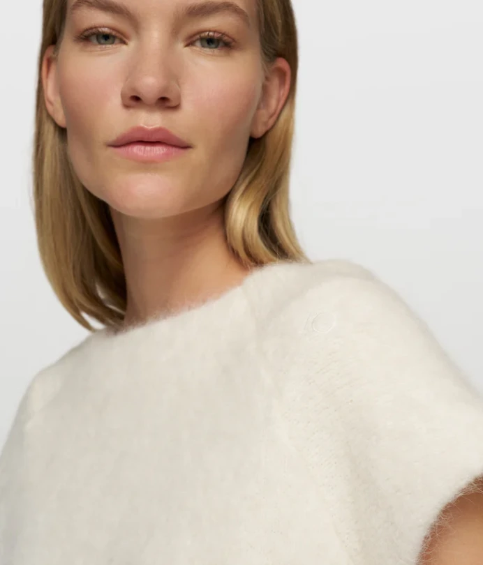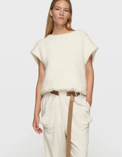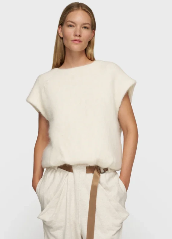 Relaxed Fit Pullunder in Ballonform, aus weichem Alpaka-Wollmix und einem Innenfutter aus weicher Baumwolle. Mit einem breiten Rippenstrickausschnitt, einem auf der Schulter aufgestickten „10“-Monogramm und einem in Falten gelegten und elastischen Saum.