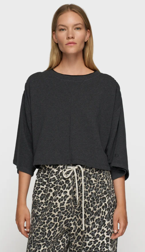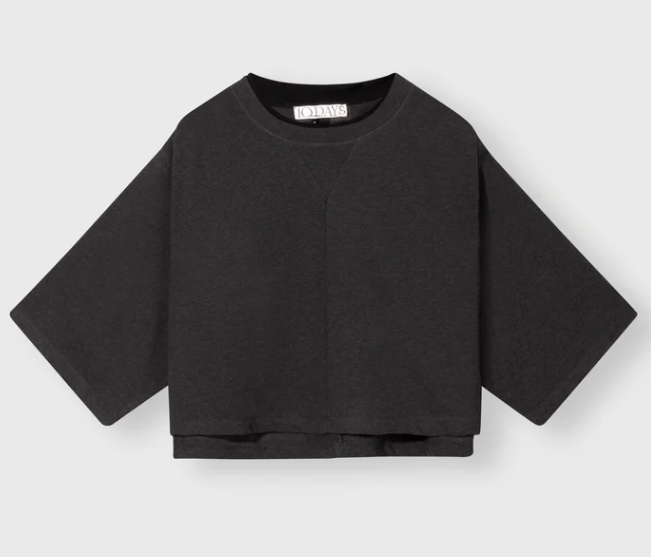 Relaxed Fit Cropped Sweater aus leichtem oldschool Fleece aus weicher Baumwolle. Mit einem Rippenstrickausschnitt, niedrigem Schulteransatz mit Faltendetails, kleinen Seitenschlitzen im Saum, einem transparenten „10DAYS“-Label auf dem Rücken und einem auf dem linken Ärmel aufgestickten „10“-Monogramm.