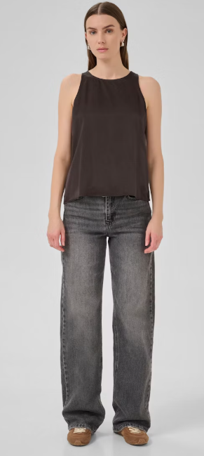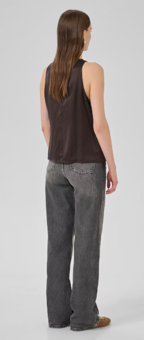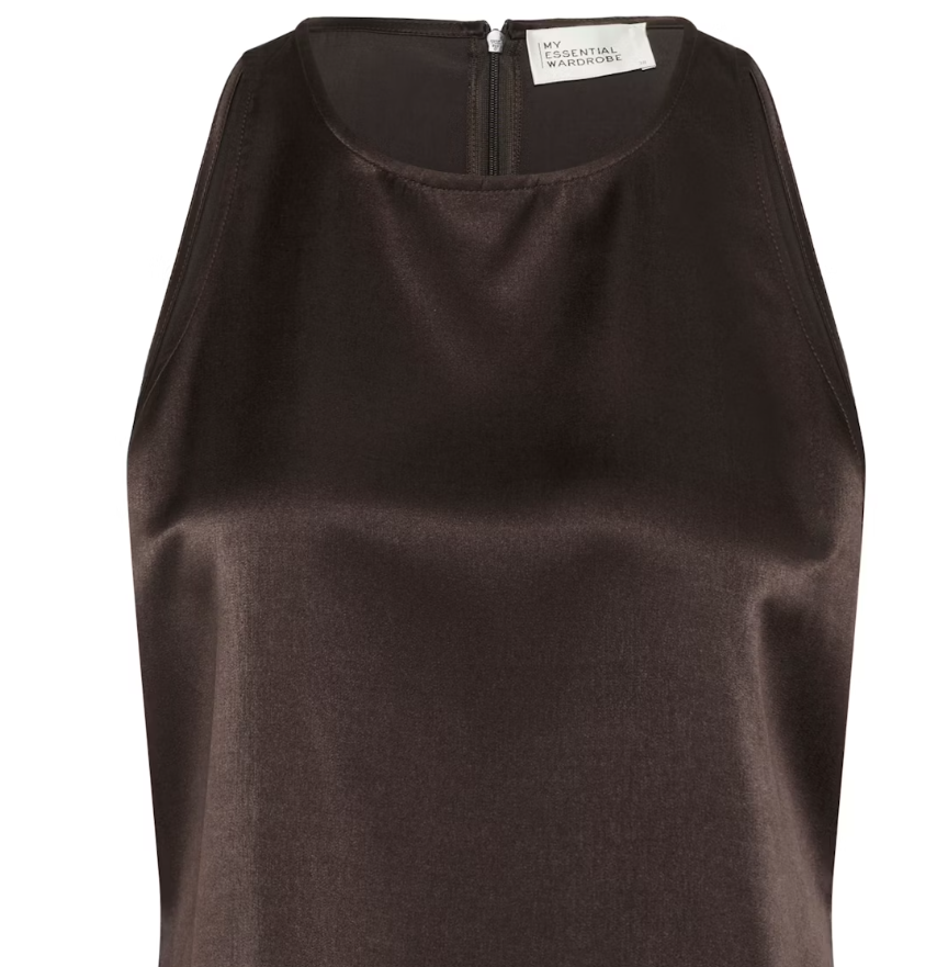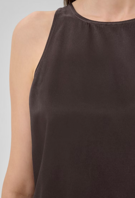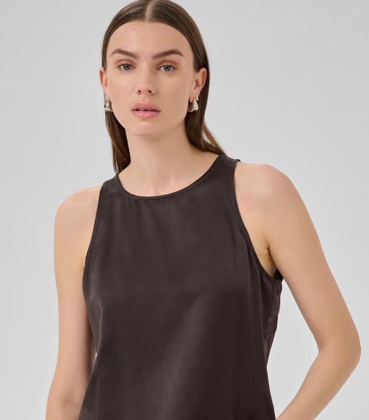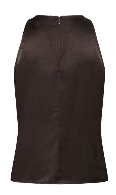 Das Satin-Top bietet eine lockere Passform, einen runden Halsausschnitt und ein ärmelloses Design. Vielseitig kombinierbar, ideal für Alltag und besondere Anlässe mit hohem Tragekomfort.